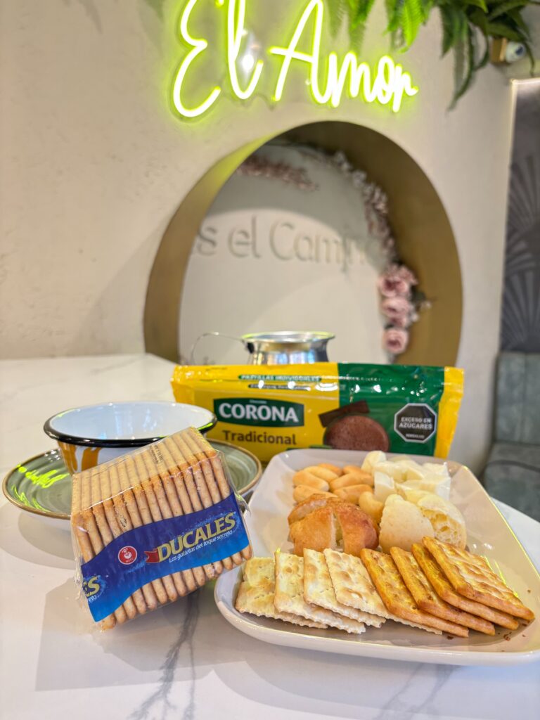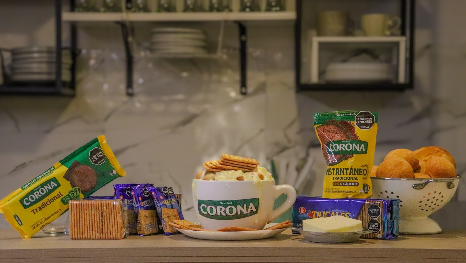 El Migao es la expresión más auténtica del amor por la tradición y el buen sabor. Inspirados en las recetas de antaño, combinamos los ingredientes más representativos de nuestra panadería artesanal: almojábana, buñuelo, bizcocho de cuajada, queso criollo en trozos, pan de queso y pan de mantequilla. Todo esto se sumerge en una taza humeante de chocolate en leche, cuidadosamente batido con la técnica tradicional que resalta la esencia del Chocolate Corona. Para el toque final, fundimos queso mozzarella, permitiendo que se derrita y rebose sobre el Migao, envolviendo cada ingrediente en una capa irresistible de cremosidad. Y como el infaltable que eleva esta experiencia, agregamos la galleta Ducales, que con su dulzura sutil y textura crujiente crea el equilibrio perfecto entre tradición y sabor auténtico. Cada sorbo y cada bocado cuentan una historia de familia, tradición y pasión, haciendo del Migao un verdadero “Amor Perfecto”.