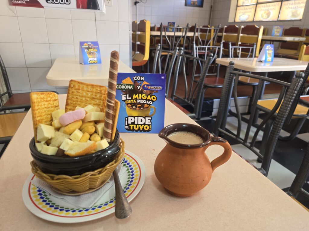 Imagina un viaje gastronómico por las tradiciones Colombianas, con un toque contemporáneo y sofisticado. Nuestro "migao dorado" es una creación única que combina lo mejor de nuestra herencia culinaria con ingredientes de alta calidad y presentación innovadora. Comienza con un delicioso chocolate CORONA preparado en leche con una espuma cremosa y suave. Luego agregamos el quesito, un clásico colombiano y queso Momposino que se estira y funde con el chocolate caliente, creando una textura irresistible. Pero eso no es todo, nuestro Migao Dorado también incluye pandequeso tipo Santarrosano, con toque tradición y sabor. Para darle un toque crujiente y contemporáneo, hemos agregado mini croissants, innovador y delicioso que eleva el plato a un nivel completamente nuevo. Finalmente para darle un toque secreto y mágico, hemos agregado galletas Ducales que le dan ese toque dulce y salado con una crocancia única. Así que estas listo para experimentar un viaje gastronómico único y delicioso, no te pierdas nuestro migao dorado con Galletas Ducales y Chocolate Corona, la mejor combinación del mundo.