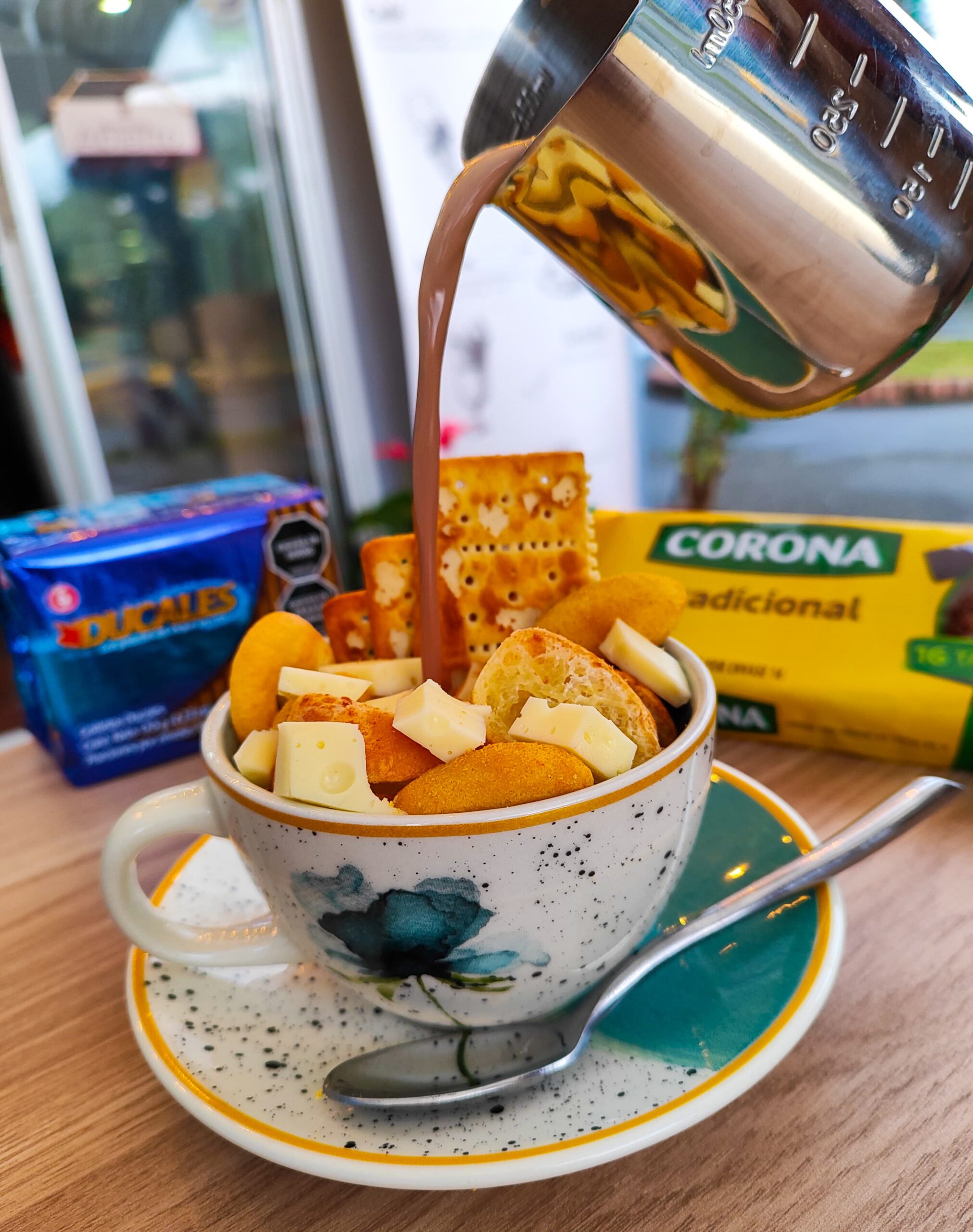 Sumérgete en la tradición colombiana con Miga'o Milly's. Cada bocado es un viaje de placer, desde un pan fresco, una almojábana esponjosa que te abraza con su suavidad, hasta el crujido de las achiras y la explosión de sabor del queso doble crema. Las galletas Ducales y los aritos de arroz añaden el toque final perfecto, mientras que el chocolate Corona te reconforta de principio a fin. ¡Una experiencia que querrás repetir!