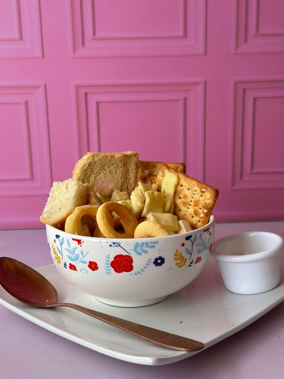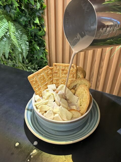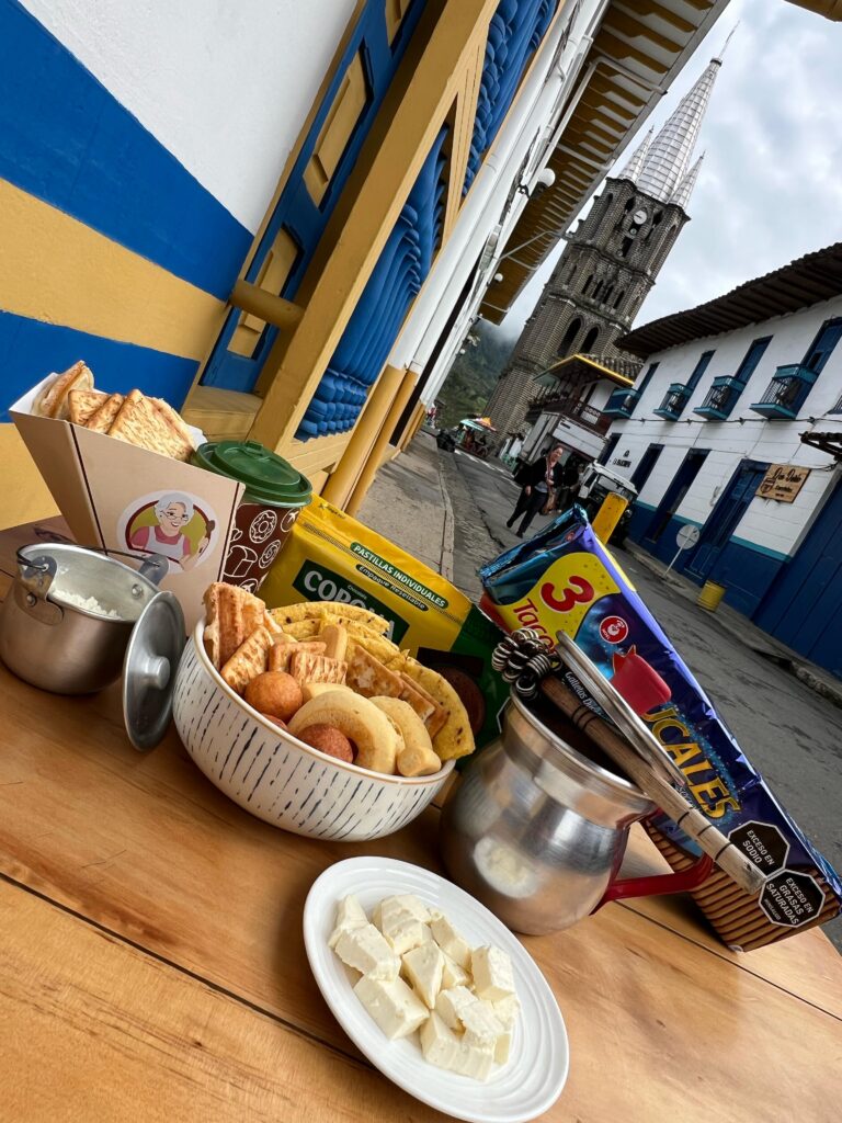 Deliciosa preparación tradicional del Migao de la abuela con el toque moderno, servido en taza de cerámica con chocolate corona tradicional especiado y el toque secreto de la abuela, acompañado de migajas de pan de la abuela, galletas ducales, tostados, queso cuajada o campesino, queso mozzarella, achiras o palos de queso,waffle de pandebono tradición valluna, pandeyuca o rosquillas a elección del cliente y porción de leche en polvo para darle ese toque de más cremosidad. (algunos clientes le migan arepita aliñada que también tenemos esa opción)