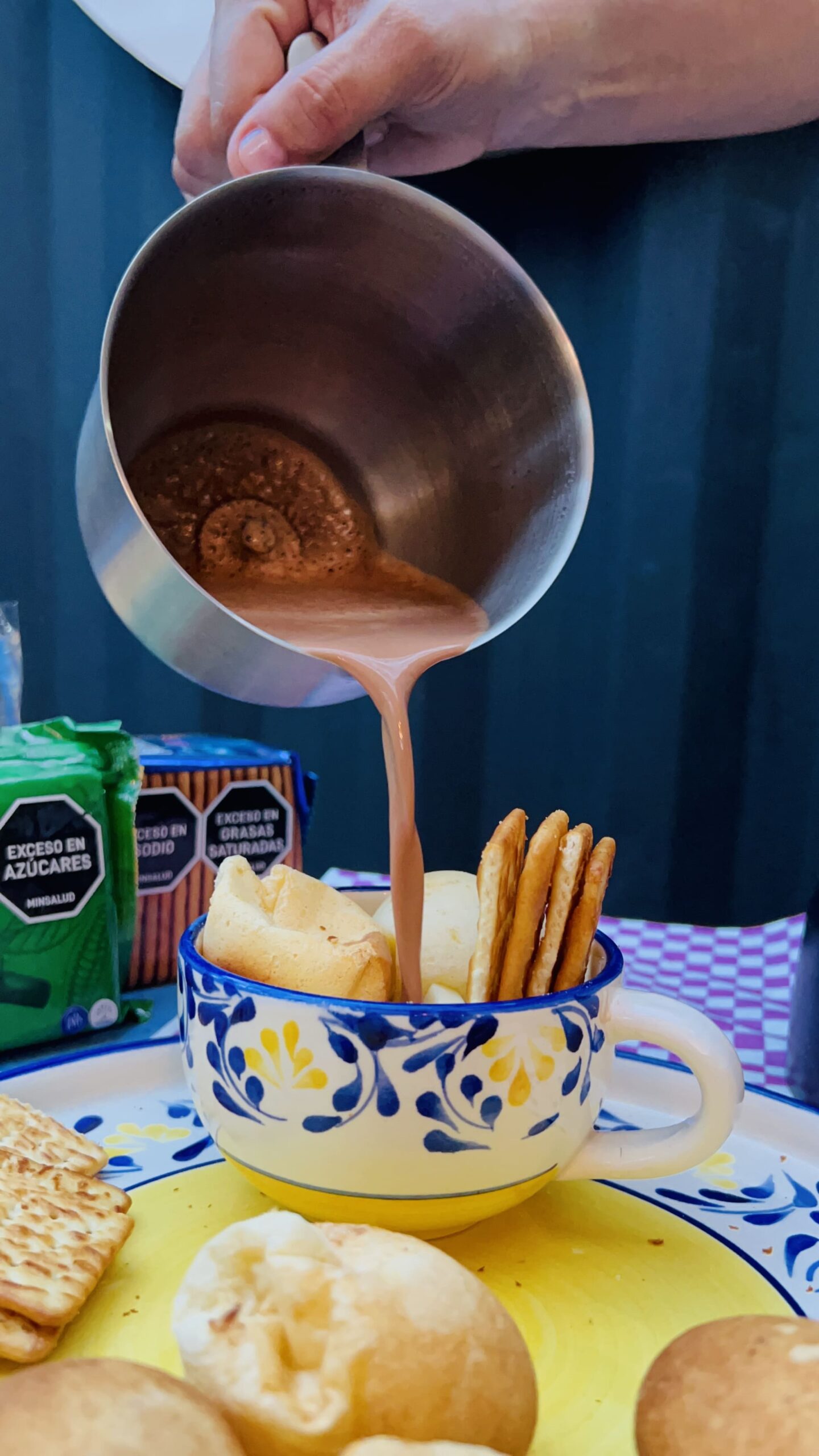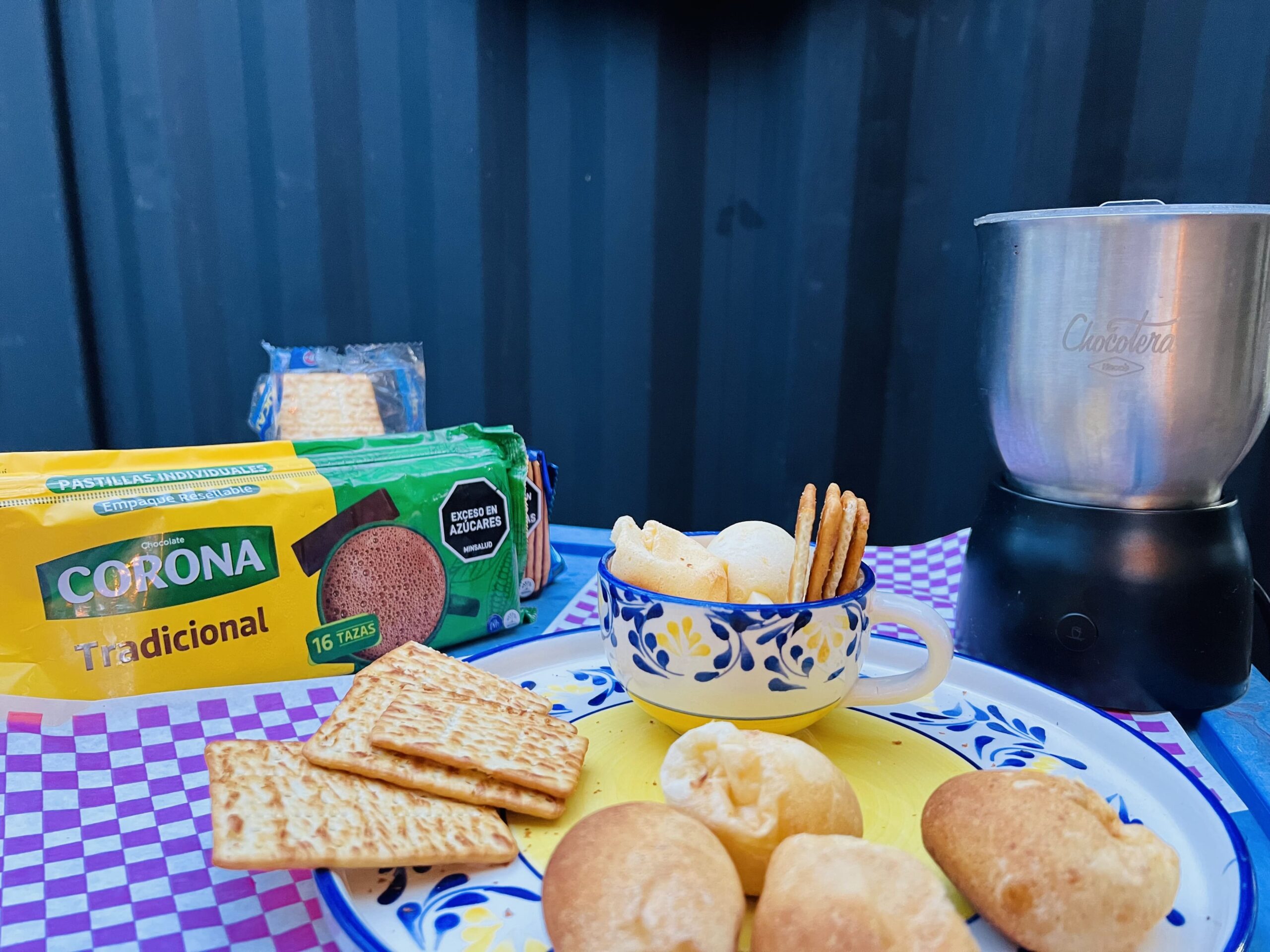 Alistamos nuestros ingredientes, ponemos hacer nuestro chocolate Corona en la chocolatera, dejamos horneando nuestros pan de bonos , alistamos nuestro paquete de galletas ducales y empezamos a picar el queso doble crema. En el pocillo ponemos el queso picado, las galletas ducales , los pan de bonos recién horneados y finalizamos colocando nuestro chocolate corona. Es la combinación perfecta para disfruta en cualquier momento del día